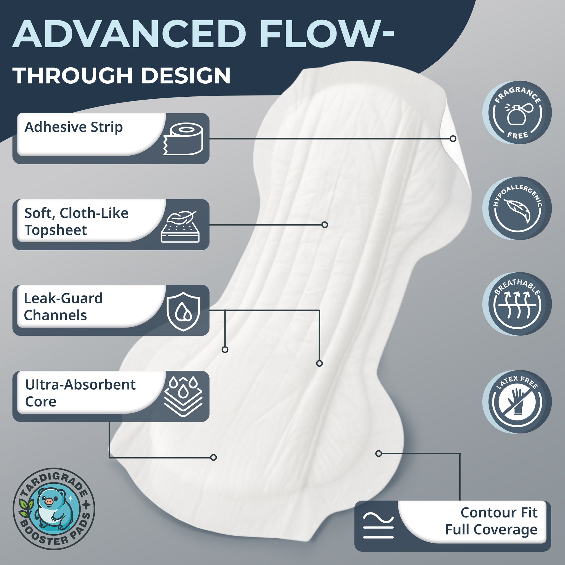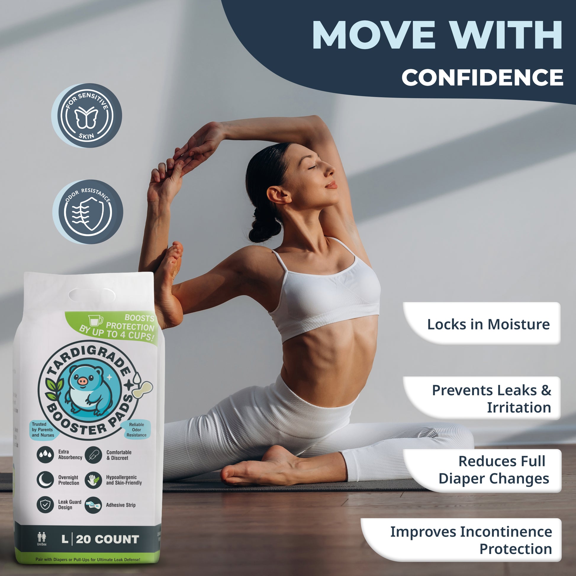 Tardigrade Booster Pad, Large Size, 20 Count, Up to 4 Cups Absorbency, Overnight Protection